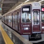 阪急9000系が塚口駅を発車するシーンです。